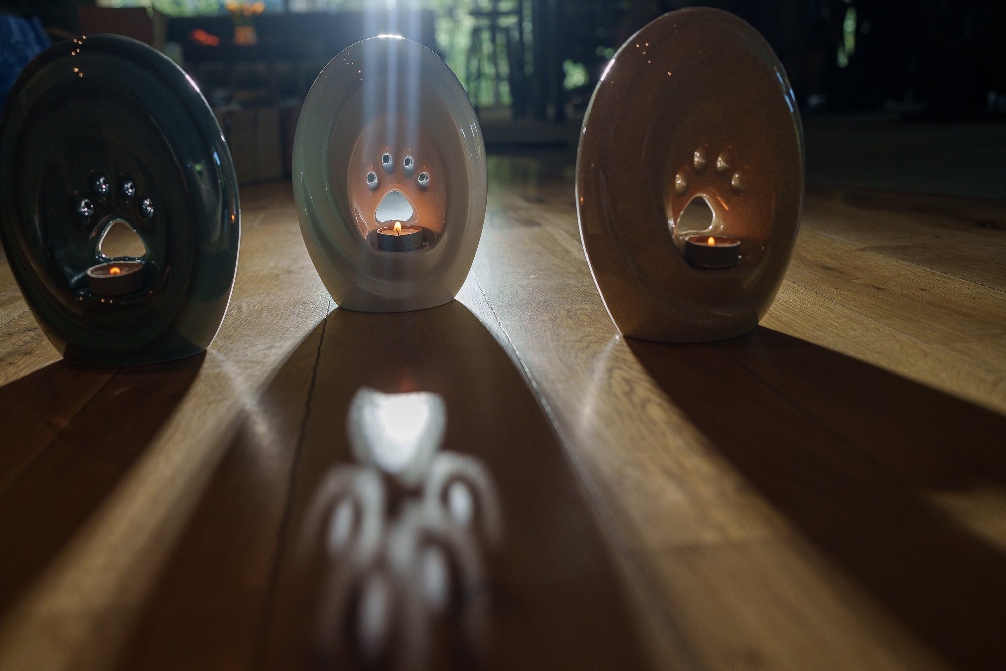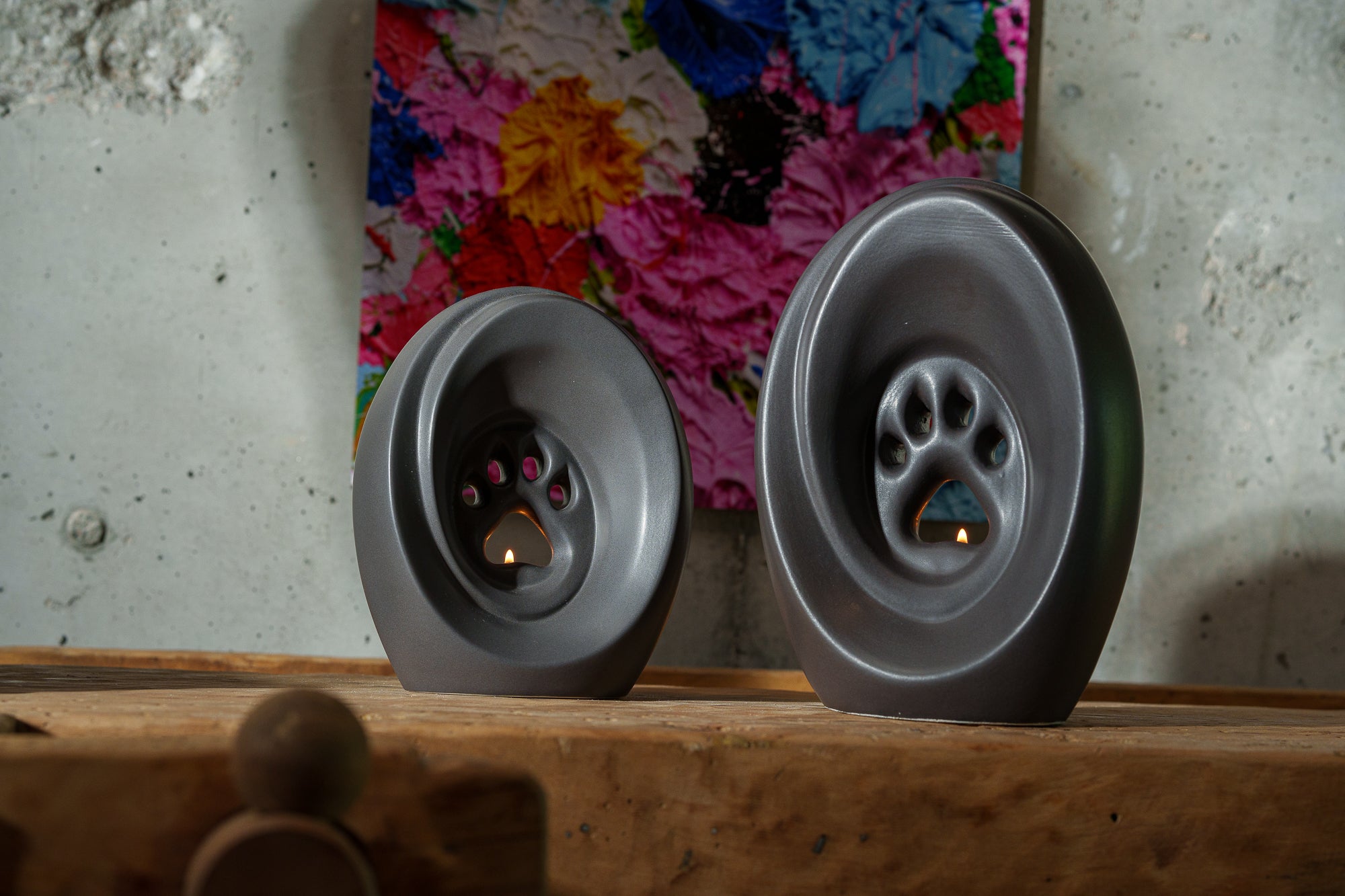 Große Pfote mit Teelicht - Haustier Urne für Asche - Grau Matt | Keramik | Handgemacht